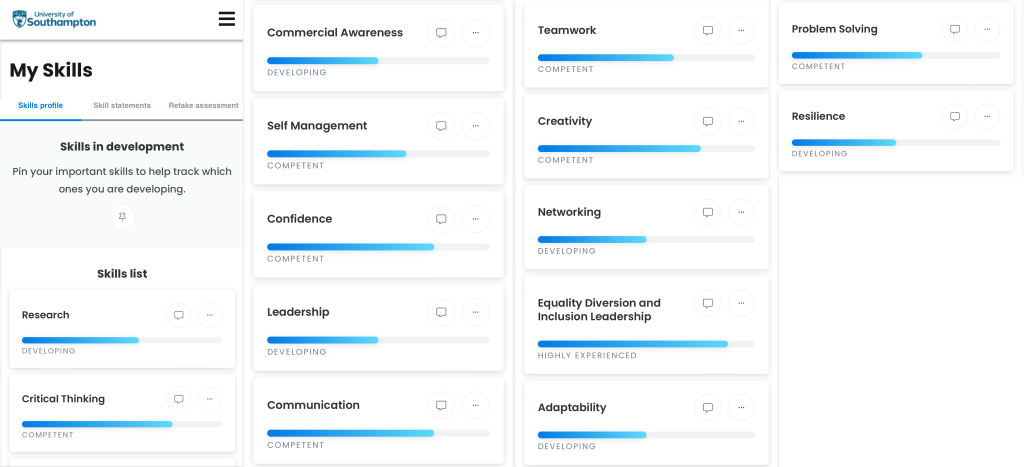 We utilised the MyPathways tool on the Southampton Careers app, where we took a quiz to identify our best skills, allowing us to look for jobs that reflect our skills.