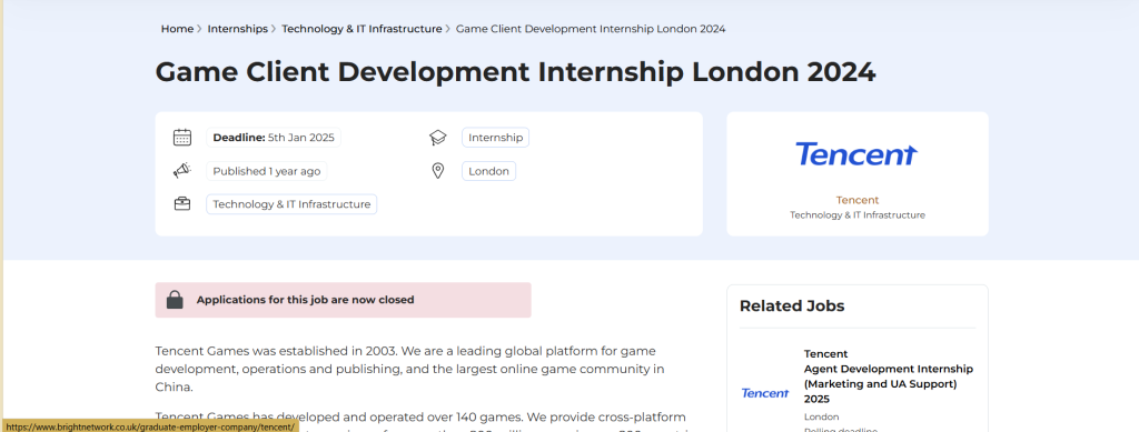 Case Study: Game Client Development Internship London 2024