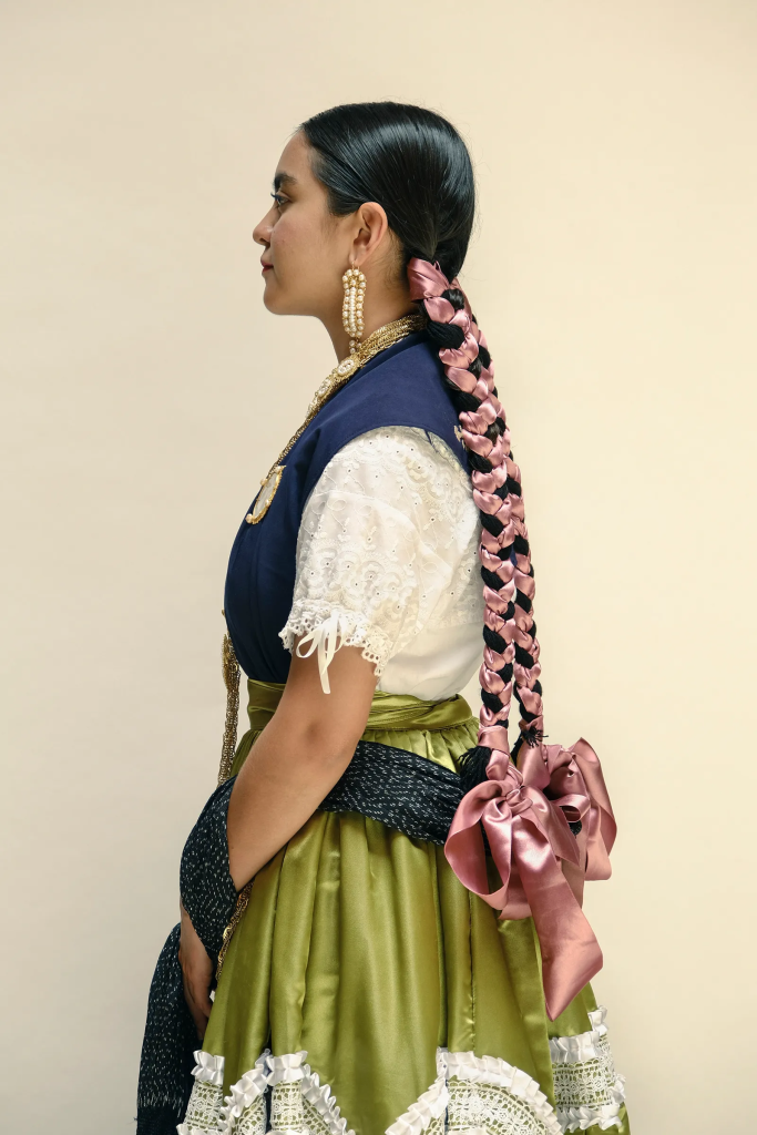 Ribbon braids are a traditional braid style hailing from the women of Oaxaca, who are preparing for the annual July festival, Guelaguetza. Each women styles her hair into “two three-strand braids and adds tlacoyales (hair adornments worn in my mesoamerican cultures), hair ties with ribbons and other adornments. (Nast, C., 2024)
